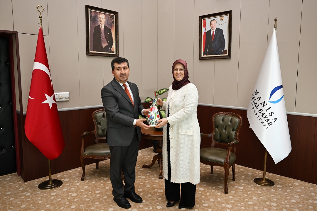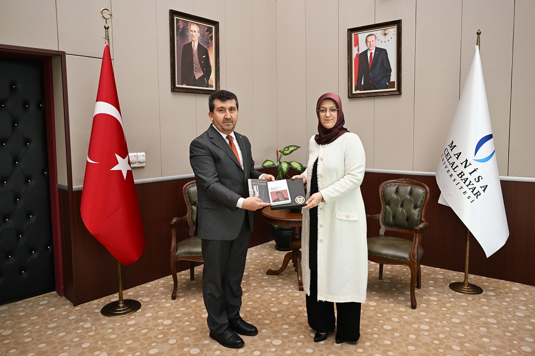 “Spinoza ve Felsefi Danışmanlık” başlıklı konferansa katılmak üzere Manisa Celal Bayar Üniversitesine gelen Ankara Sosyal Bilimler Üniversitesi Rektörü Prof. Dr. Musa Kazım Arıcan, program kapsamında Rektör Prof. Dr. Rana Kibar’ı makamında ziyaret etti.