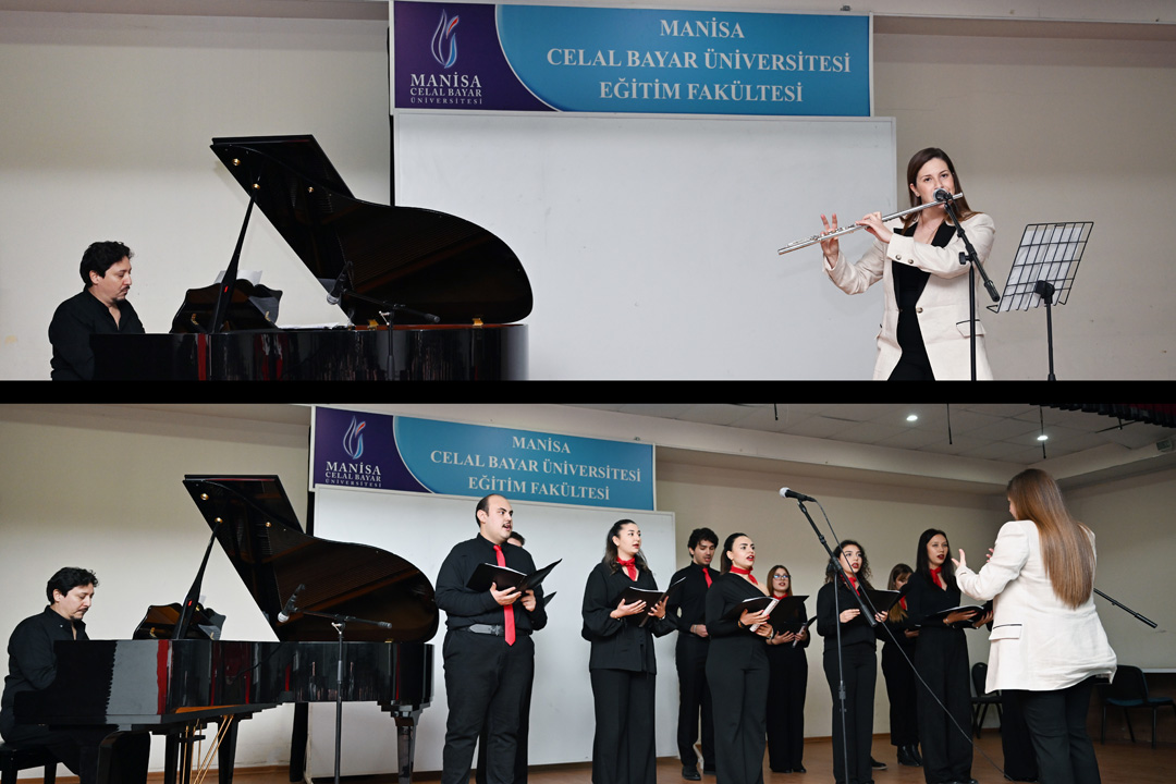 Program, Müzik Eğitimi Anabilim Dalı öğretim üyeleri Doç. Kutup Ata Tuncer ve Dr. Öğr. Üyesi Seçil Soytok Nalçacı ile Müzik Eğitimi Anabilim Dalı korosunun hazırladığı Öğretmenler Günü Müzik Dinletisi ile devam etti. Ardından Öğretmenler Günü’ne özel video gösterimi ve merhum Özgen İzmiroğlu anısına hazırlanan belgesel niteliğindeki video izleyicilere sunuldu.