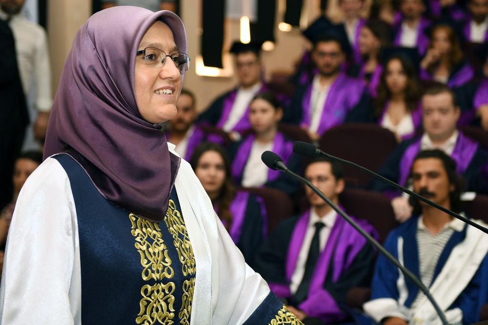 Filistin meselesine değinerek konuşmasına başlayan Rektör Prof. Dr. Rana Kibar konuşmasına şöyle devam etti: “Kıymetli aileler dört yıl önce bizlere emanet olarak verdiğiniz çocuklarınızı bugün sizlere değerli öğretim üyesi kadromuzla her birini alanında uzman donanımlı birer meslek sahibi olarak yetiştirdik ve bugün sizlere geri veriyoruz. Onların bu başarılarıyla ne kadar gurur duysanız azdır. Bugün yaşadığımız bu gurur sebebiyle her birinizi tebrik ediyorum.