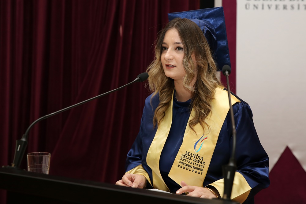 Program, fakülte birincisi Sabahat Özyıldız’ın mezunlar adına yaptığı konuşma ile başladı.