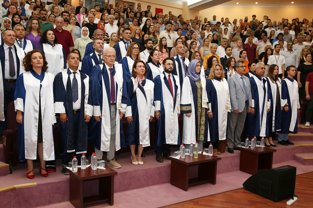 Törene Rektör Prof. Dr. Rana Kibar, Rektör Yardımcısı Prof. Dr. Oktay Üçer, Genel Sekreter Erhan Doğan, akademik ve idari personel, davetliler, aileler ve öğrenciler katıldı.