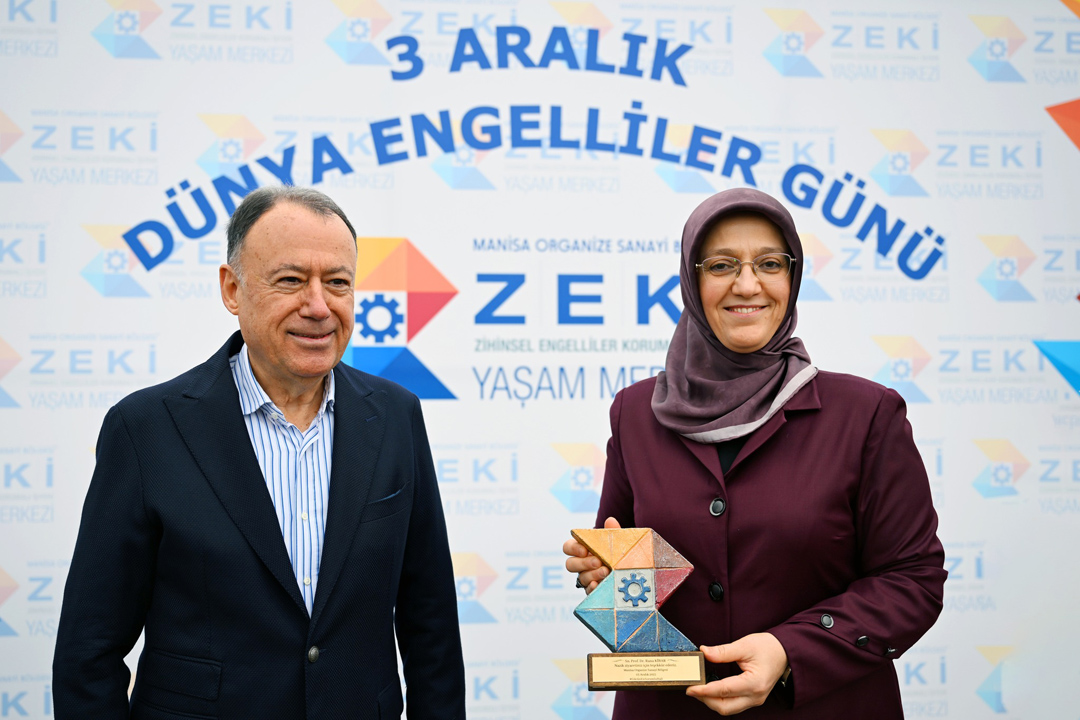 Programda, ZEKİ Yaşam Merkezi tarafından Manisa Celal Bayar Üniversitesi’nin engelli bireylerin eğitimden sosyal hayata katılımına kadar verdiği destekler nedeniyle Rektör Prof. Dr. Rana Kibar’a plaket takdim edildi.