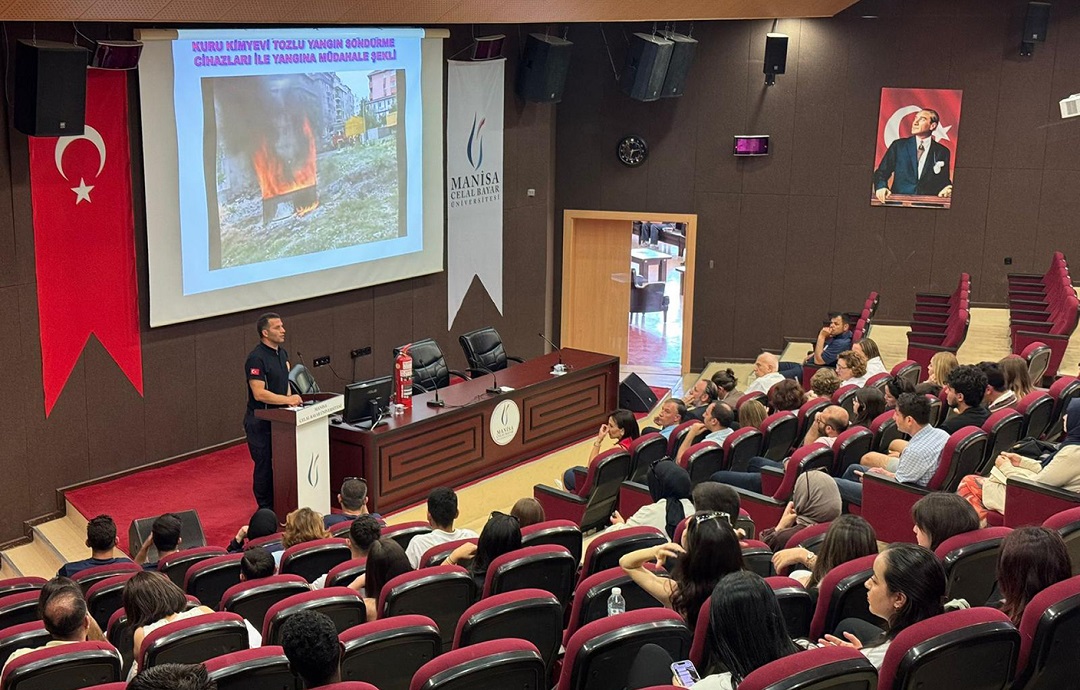 Üniversitemiz akademik ve idari personeli ile çok sayıda öğrencinin katılımıyla gerçekleşen, öğrenciler tarafından hazırlanan kısa bir tanıtım videosunun gösterimiyle başlayan etkinlik, eğitmen ve itfaiye ekiplerinin sunumlarıyla devam etti.