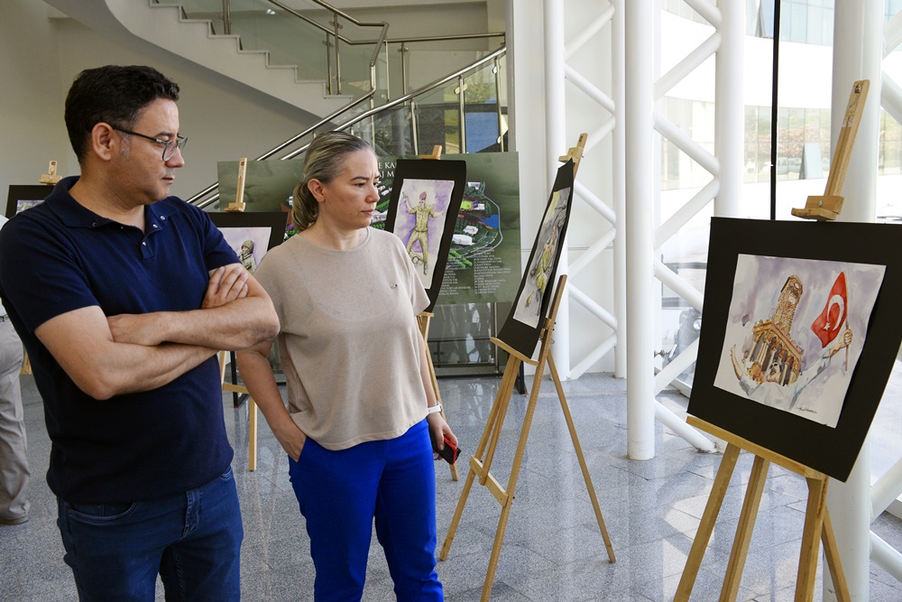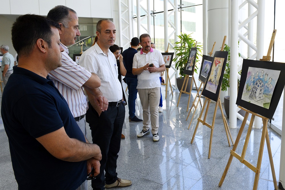 15 Temmuz hain darbe girişiminin 7. yıl dönümünde şehitleri hatırlamak, gösterilen direnci, birlikteliği ve iradeyi belleklerde taze tutmak amacıyla, MCBÜ Güzel Sanatlar Tasarım ve Mimarlık Fakültesi Dekanı Prof. Dr. Oğuz Dilmaç’ın kişisel suluboya eserlerinden oluşan “15 Temmuz Demokrasi ve Milli Birlik Günü”” konulu serginin açılışı gerçekleşti.