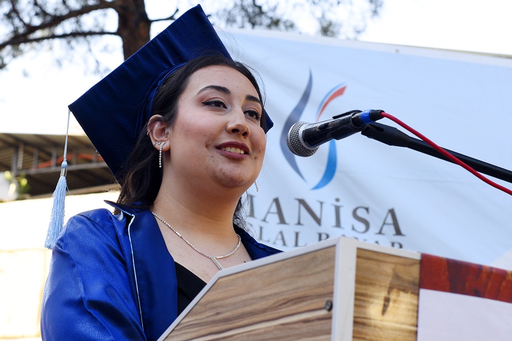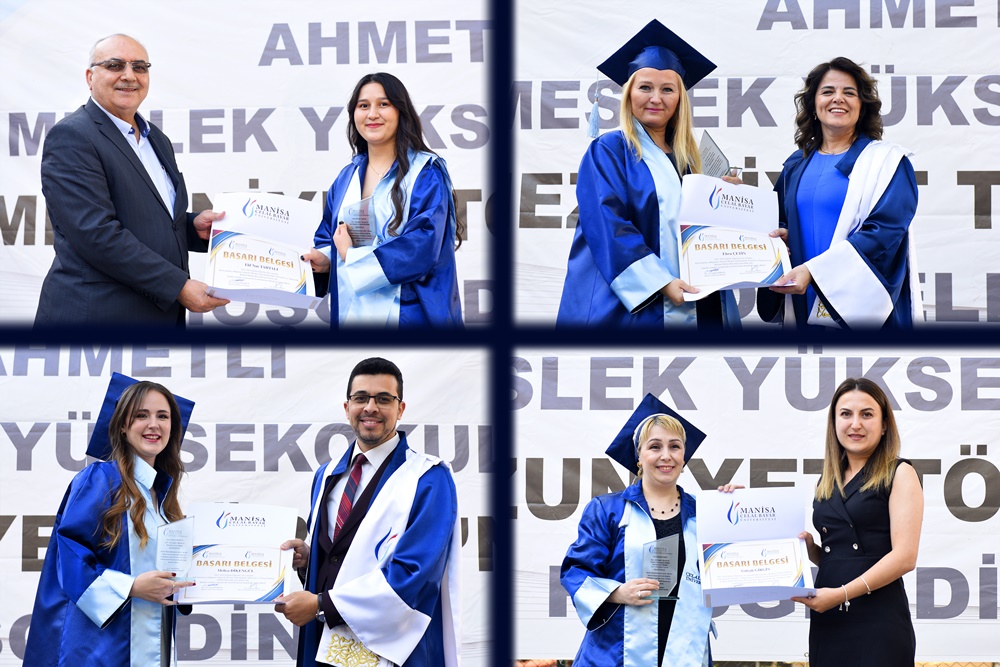Ahmetli İlçe Kaymakamı Mehmet Akif Temür, “Eğitim öğretim faaliyetlerinin kesintisiz sürdürülmesindeki gayretleri, buradaki çalışmalarımıza verdikleri katkılar ve böyle bir töreni düzenledikleri için Ahmetli MYO Müdürü Doç. Dr. Alpay Bizbirlik, Müdür Yar. Doç. Dr. Sibel Aybarç Mora, Müdür Yardımcısı Öğr. Gör. Faruk Özbay ve MYO Sekreteri İsmet Özkan’a teşekkür ediyorum. Siz değerli ailelerimizi de böyle pırıl pırıl gençleri yetiştirdiğiniz için yürekten kutluyorum. Değerli öğrenciler, ailelerinizin üzerinizdeki emeklerini ve yaptıkları fedakârlıkları hiçbir zaman unutmayın. Mezun arkadaşlarımızı tebrik ediyorum” ifadesini kullandı.