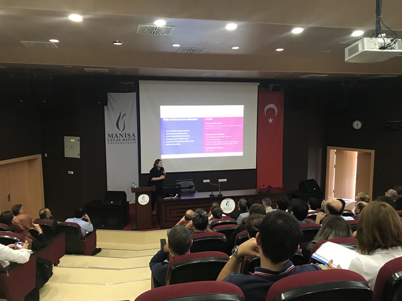 Clarivate Analytics Uzmanı Derya Soğuksu da bugünün dünyasında akademisyenlerin önündeki büyük zorluklar ve fırsatları anlattı. Soğuksu ayrıca; SCI’ye başvuru konusunda editoryal titizliği ve dergi düzeyinde en iyi uygulamaları seçmek için tasarlanmış 24 kalite kriteri, Web of Science Platformu, Journal Citation Report, Essential Science Indicators, Incites, yapılan hakem değerlendirmelerinin nitelik ve niceliğini objektif kriterlere göre değerlendiren Publons gibi kuruluşlar hakkında bilgiler verdi. Çalıştay, akademisyenlerinin sorularının cevaplanması ve karşılıklı görüş alışverişi sonrasında, Kütüphane ve Dokümantasyon Daire Başkanı Hıdır Metin tarafından Derya Soğuksu’ya teşekkür belgesi takdim edilmesi ile sona erdi.