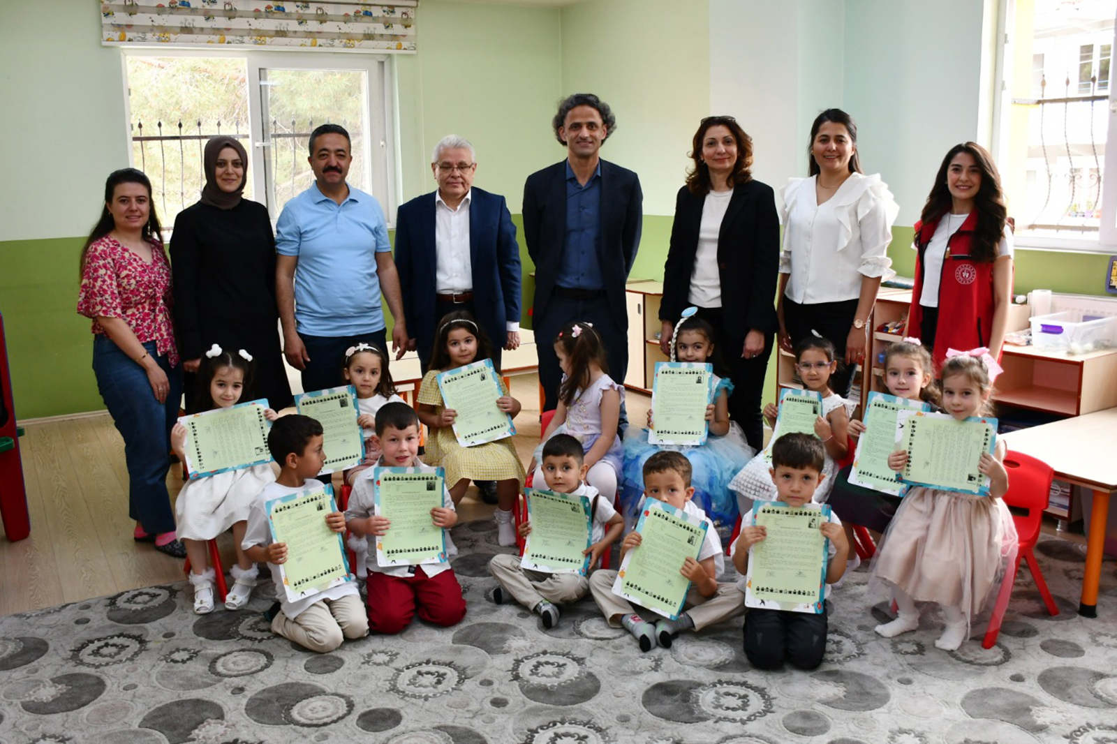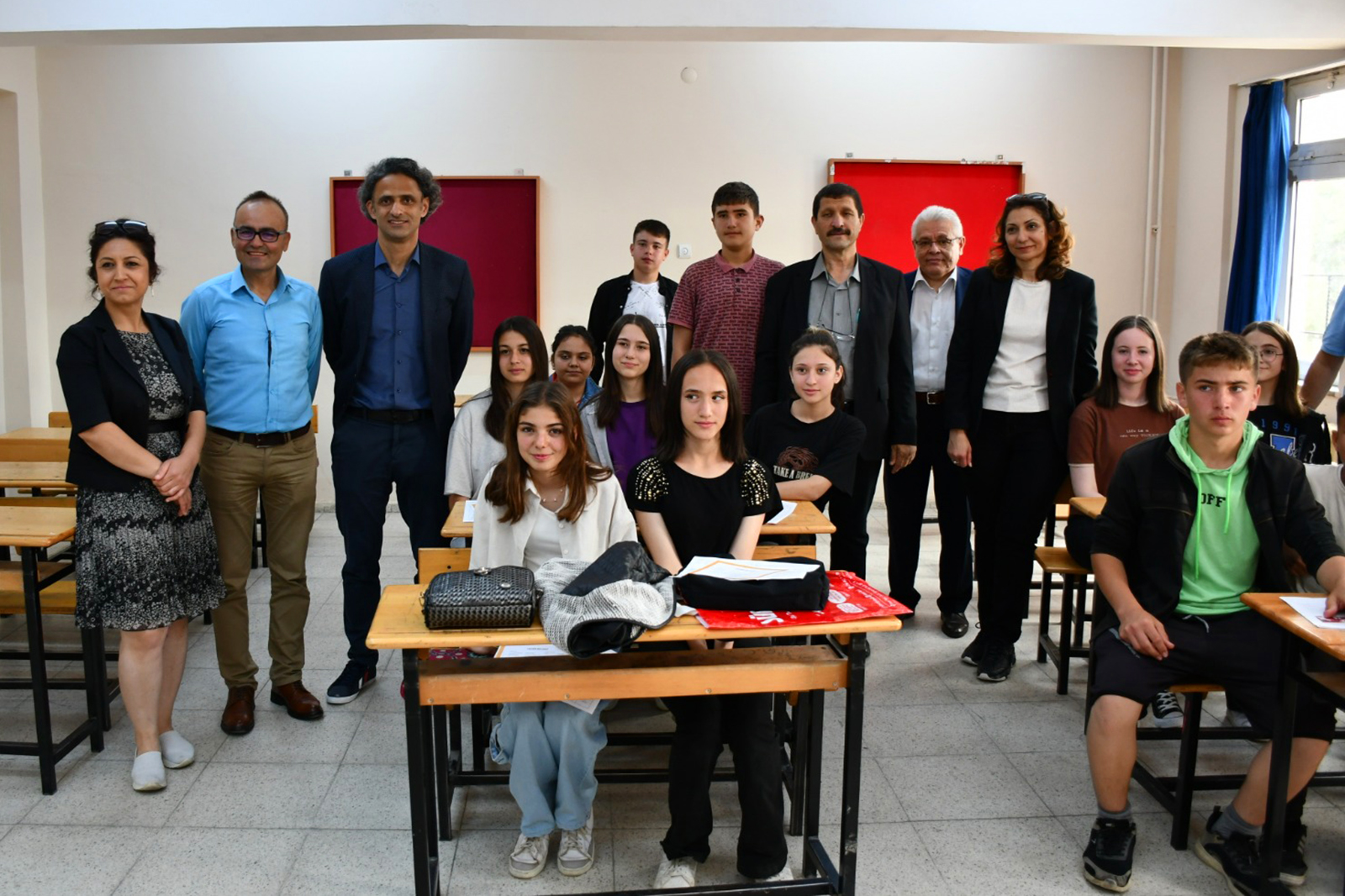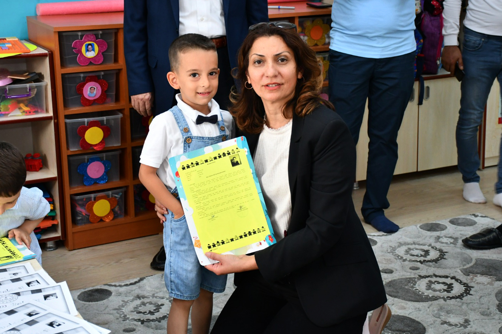 Sınıfları ziyaret eden protokol üyeleri, öğretmenler ile birlikte öğrencilere hediyeler vererek, karne takdimini gerçekleştirdi.