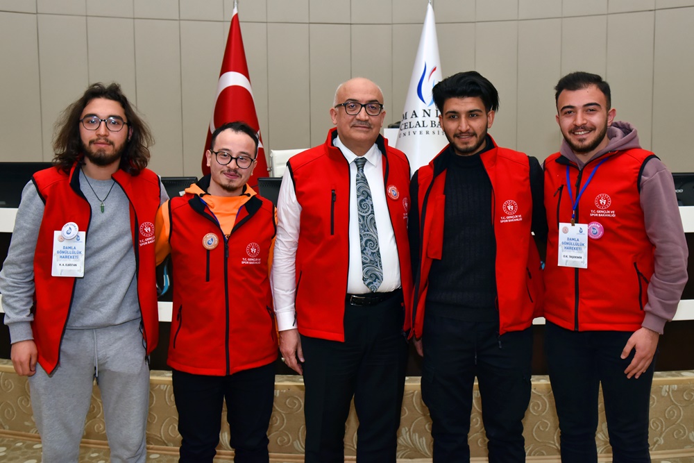 Gençlik ve Spor Bakanlığı tarafından gönüllülük esasına göre hayata geçirilen Damla Projesi kapsamında Manisa'ya gelen 43 gönüllü genç, Manisa Celal Bayar Üniversitesi Rektörü Prof. Dr. Ahmet Ataç’ı ziyaret etti.