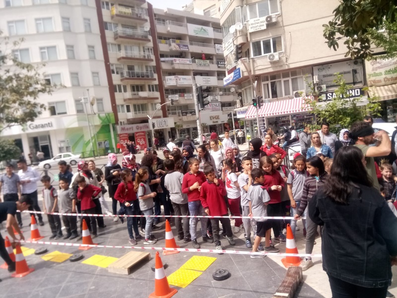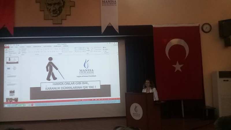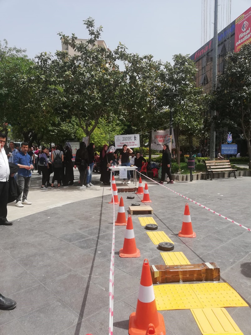 Üniversitemiz Sağlık Bilimleri Fakültesi Hemşirelik 3. sınıf öğrencileri Sosyal Sorumluluk Projeleri Dersi kapsamında dersin sorumlu öğretim üyesi Doç. Dr. Dilek Özmen ve Arş. Gör. Fatma Uyar ile görme engelli bireylerin günlük hayatta yaşadıkları zorluklara dikkat çekmek amacıyla “Hayata Onlar Gibi Bak, Karanlık Dünyalarına Işık Yak” sloganıyla “Toplum Görme Engellilerin Farkına Varıyor” adlı projeyi gerçekleştirdi.