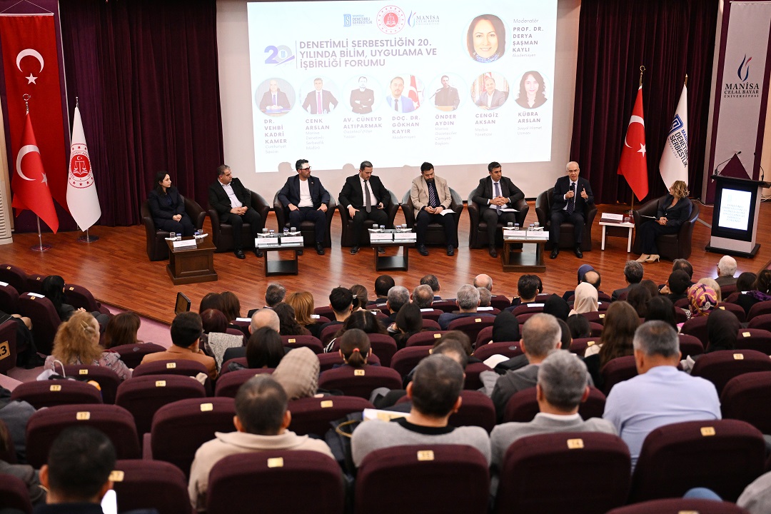 Moderatörlüğünü Prof. Dr. Derya Şaşman Kaylı’nın üstlendiği forumda; Cumhuriyet Savcısı Dr. Vehbi Kadri Kamer, Denetimli Serbestlik Müdürü Cenk Arslan, Hukukçu/Köşe Yazarı Av. Cüneyd Altıparmak, MCBÜ Öğr. Üyesi Doç. Dr. Gökhan Kayır, Manisa Gazeteciler Cemiyeti Başkanı Önder Aydın, Gazeteci Cengiz Aksan ve Sosyal Hizmet Uzmanı Kübra Arslan tarafından denetimli serbestliğin 20 yıllık gelişimi, mevcut uygulamalar ve iş birliği olanakları değerlendirildi.