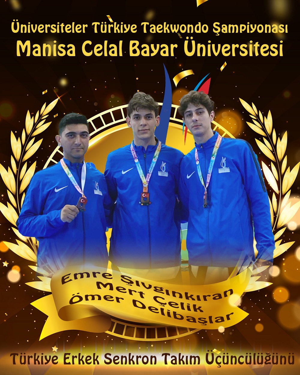 Manisa Celal Bayar Üniversitesi, idareciliğini Prof. Dr. Fatih Çatıkkaş ve Antrenörlüğünü Doç. Dr. Sinan Seyhan’ın üstlendiği Şampiyona sonucunda; Emre Şıvgınkıran, Mert Çelik ve Ömer Delibaşlar Poomse dalında Türkiye Erkek Senkron Takım Üçüncülüğünü kazanırken, ferdi 63.kg’da Tunahan Elmas Türkiye üçüncülüğünü kazandı.