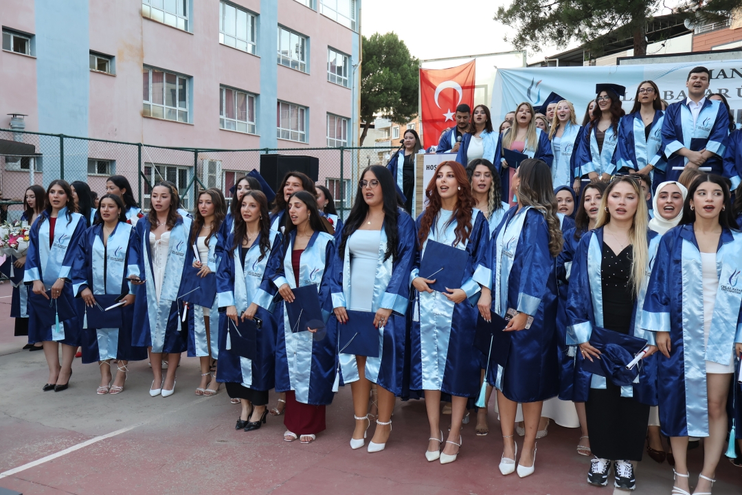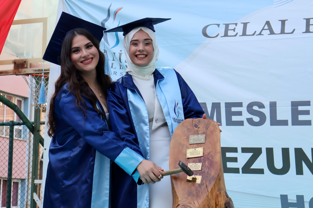 Mezuniyet töreninde okul birincisi olarak kürsüye çıkan Nurgül Akyar ve Ceyda Karabolat, ailelerine, hocalarına ve arkadaşlarına teşekkür ederek birer konuşma yaptı. Akyar konuşmasında “Disiplin, sorumluluk ve dürüstlükle mezun olduk” derken; Karabolat ise “Bugün hayalini kurduğum hedefe ulaşmanın gururunu yaşıyorum” sözleriyle salondan büyük alkış aldı.