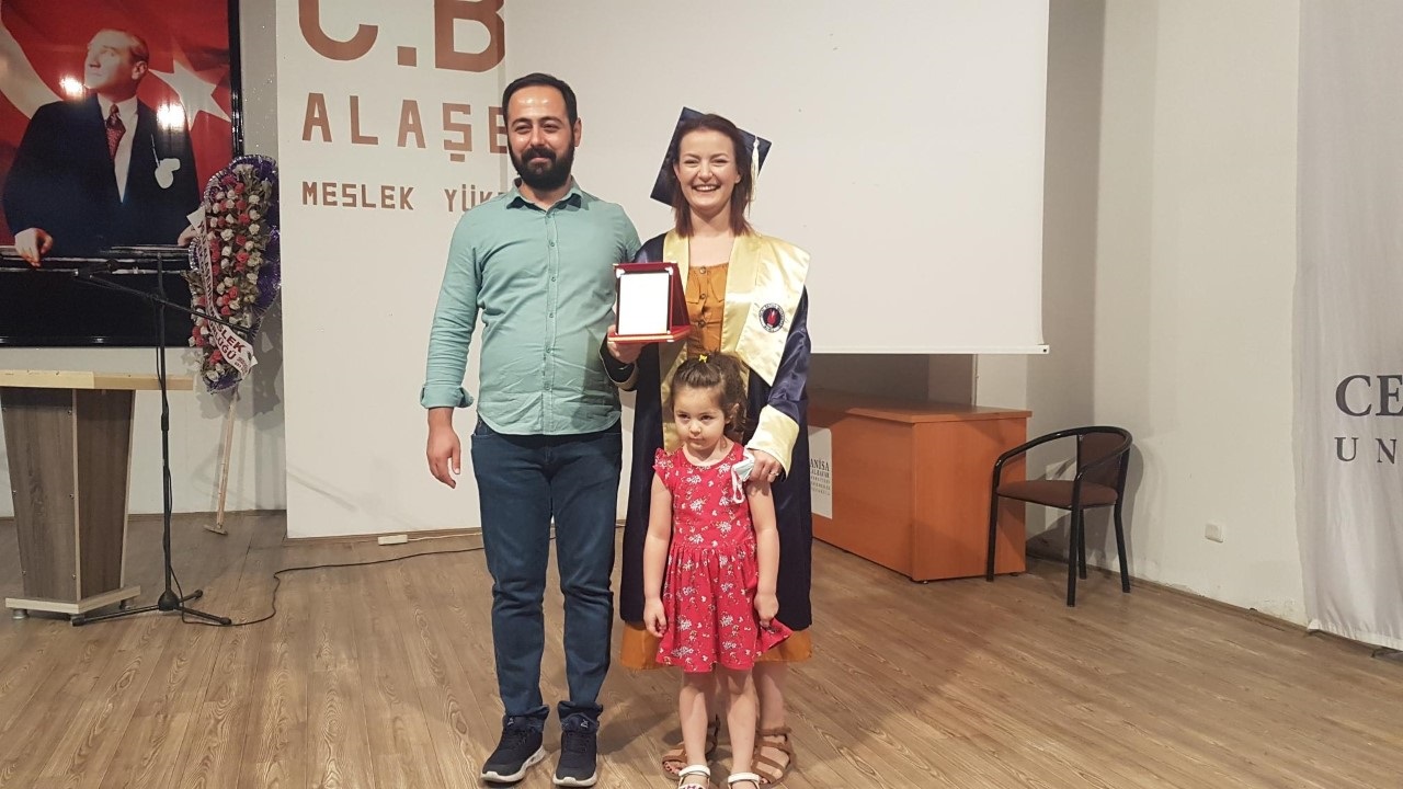 Mezuniyet töreni, okulu birincilikle bitirmeye hak kazanan, Kimya ve Kimyasal İşleme Teknolojileri Bölümü Laboratuvar Teknolojisi Programı mezunu Sevgili İpek ÖZDEMİR’e başarı belgesinin takdim edilmesini takiben kep atma merasimi ile sona erdi.