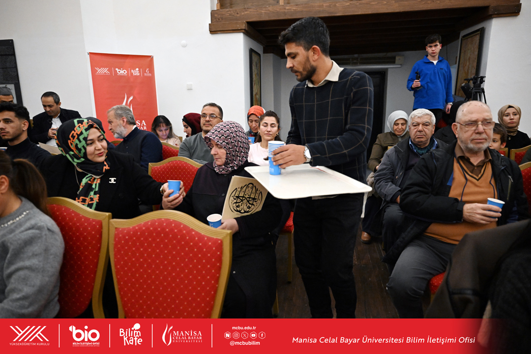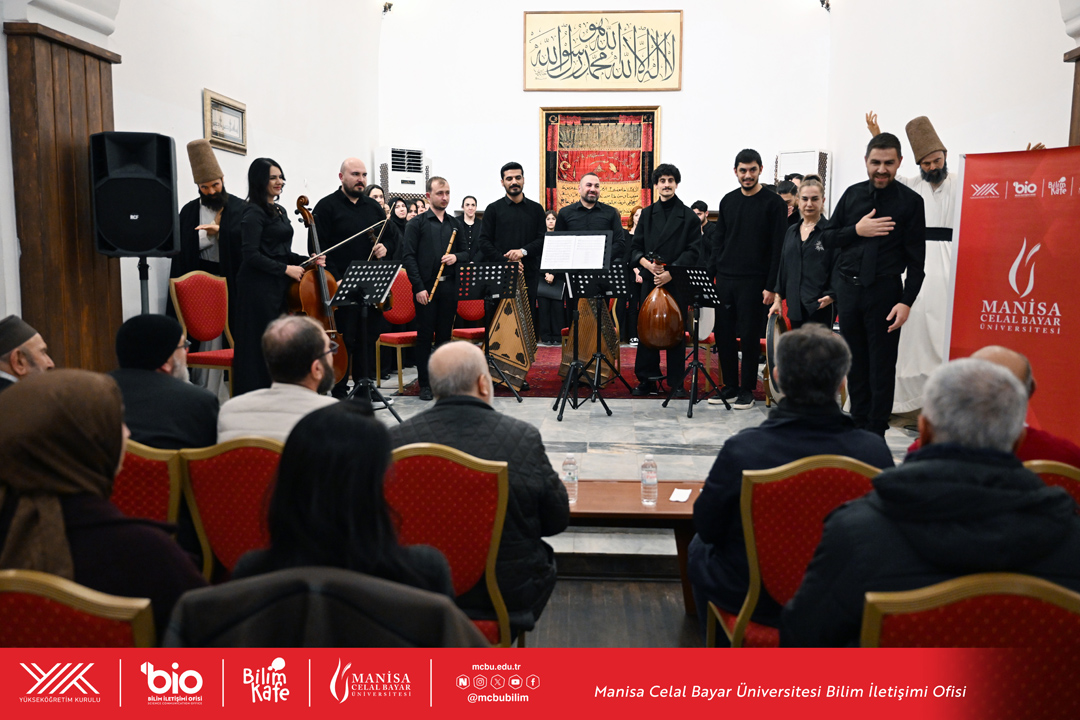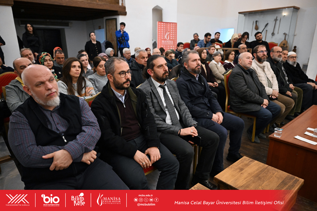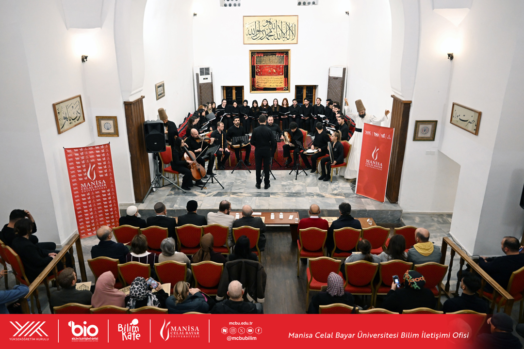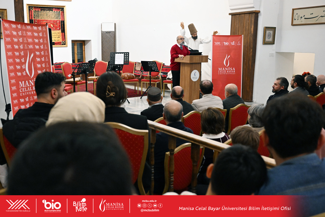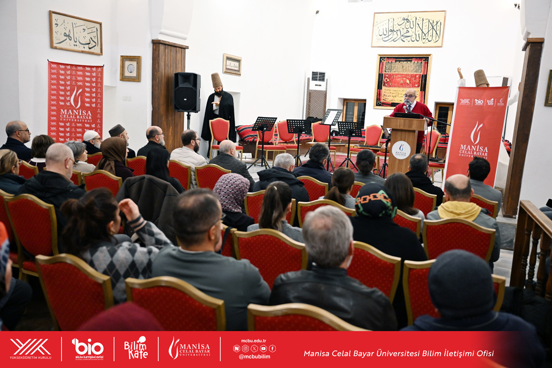 Manisa Celal Bayar Üniversitesi’nin düzenlediği Bilim Kafe etkinlikleri kapsamında, Mevlâna Celaleddin Rûmî’nin düşünce dünyasını ve Mevlevîliğin tarihsel ve manevî mirasını ele alan “Mevlâna ve Mevlevilik” konulu söyleşi, Manisa Mevlevihane’sinde Manisalıların yoğun katılımıyla gerçekleştirildi.