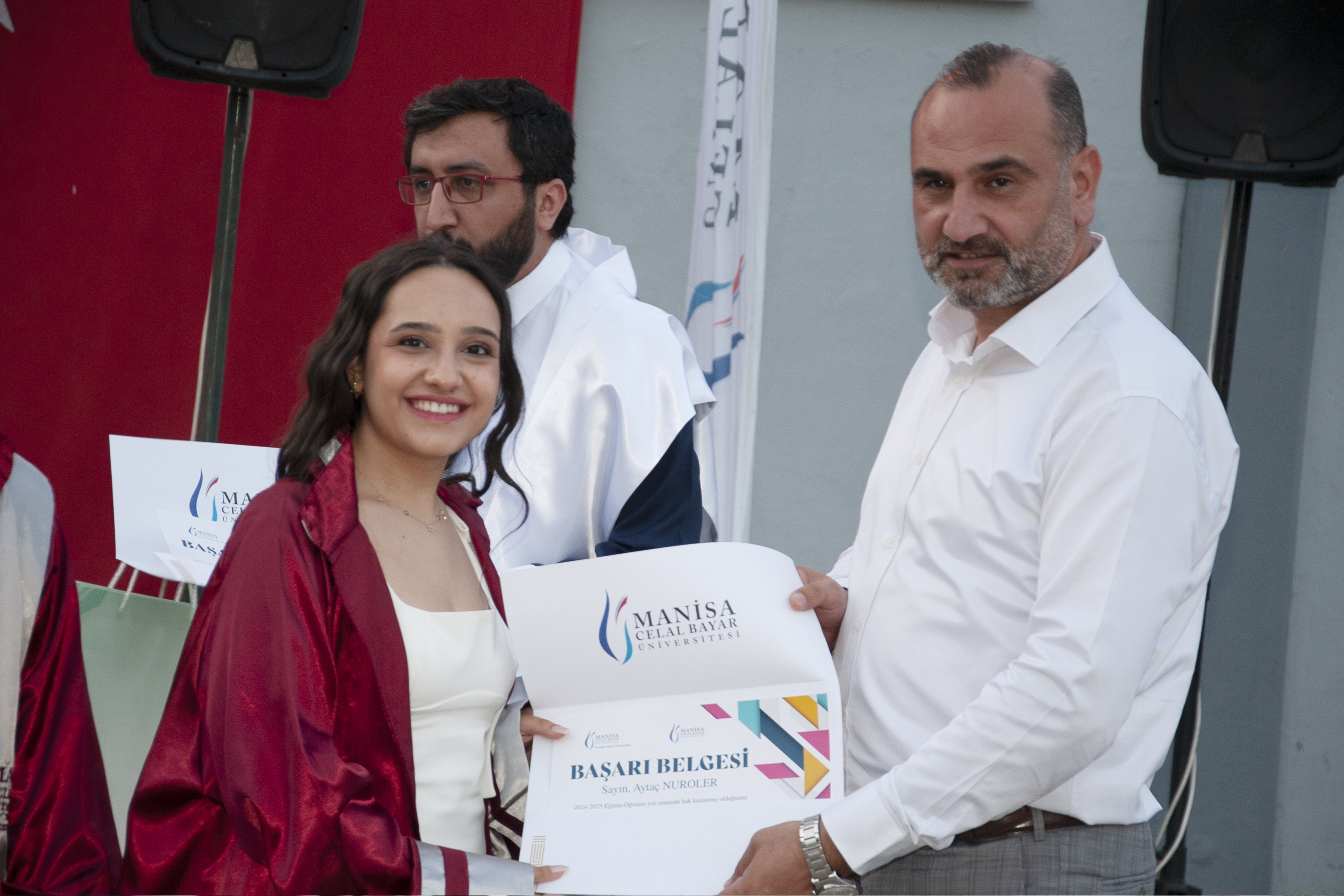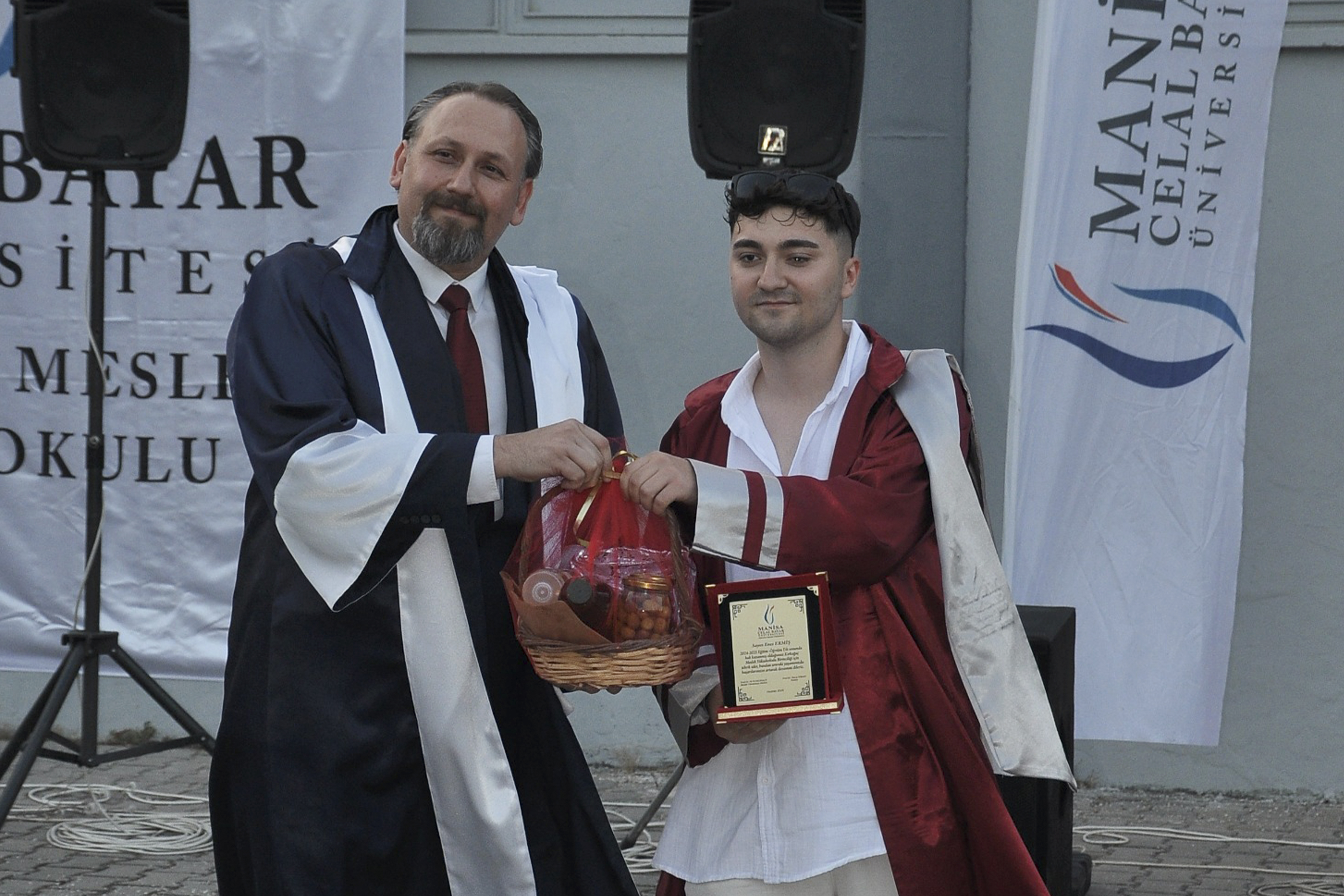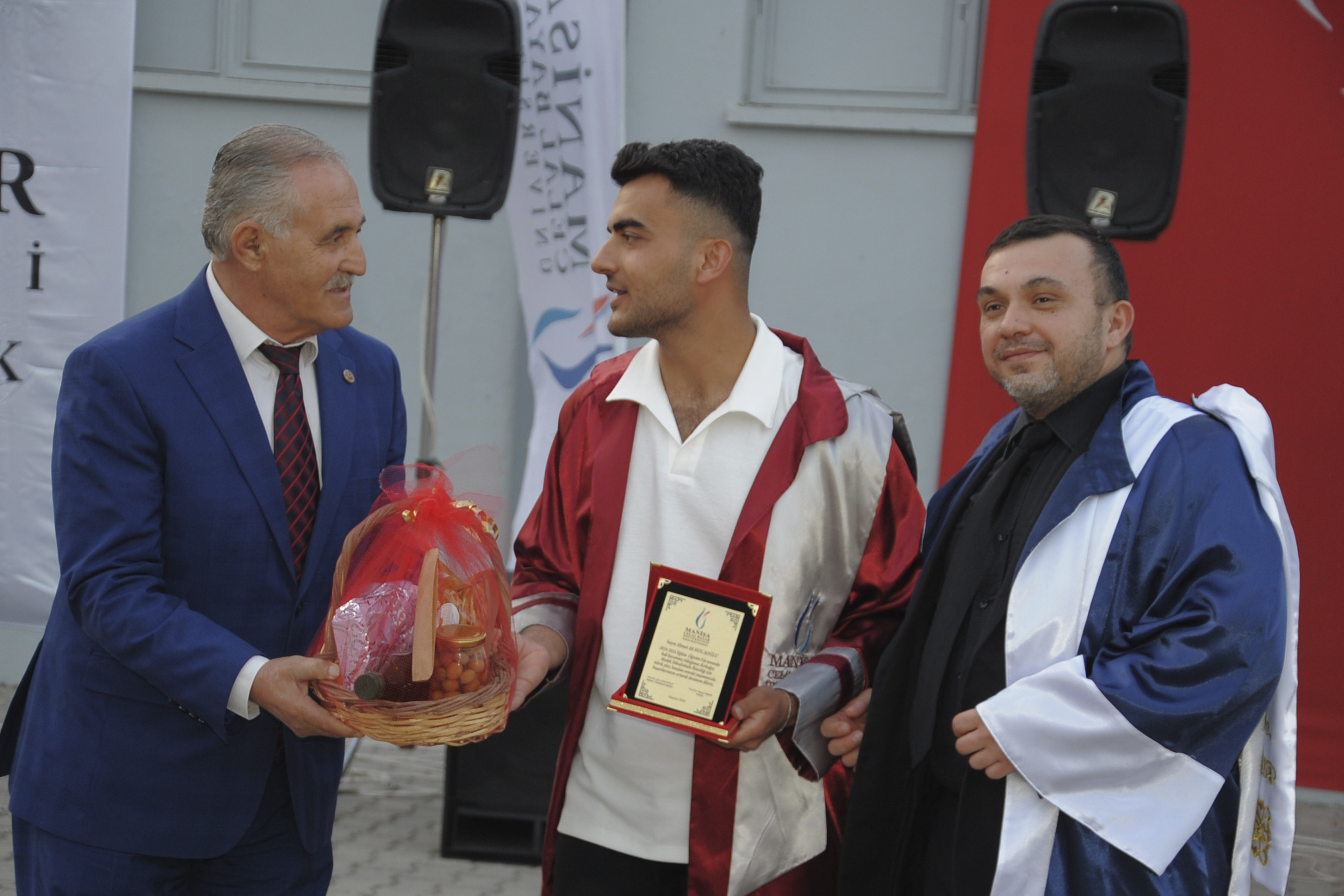 Kırkağaç Meslek Yüksekokulu birincisi Enes Ermiş, tüm mezunlar adına yaptığı konuşmada, eğitim süreci boyunca kazandığı bilgi, dostluk ve değerler için hocalarına, arkadaşlarına ve ailesine teşekkür ederek, “Bugün burada bir dönemi uğurlarken, yepyeni başlangıçlara doğru adım atıyoruz. Yollarımız açık, bahtımız aydınlık olsun” ifadeleriyle duygularını dile getirdi.