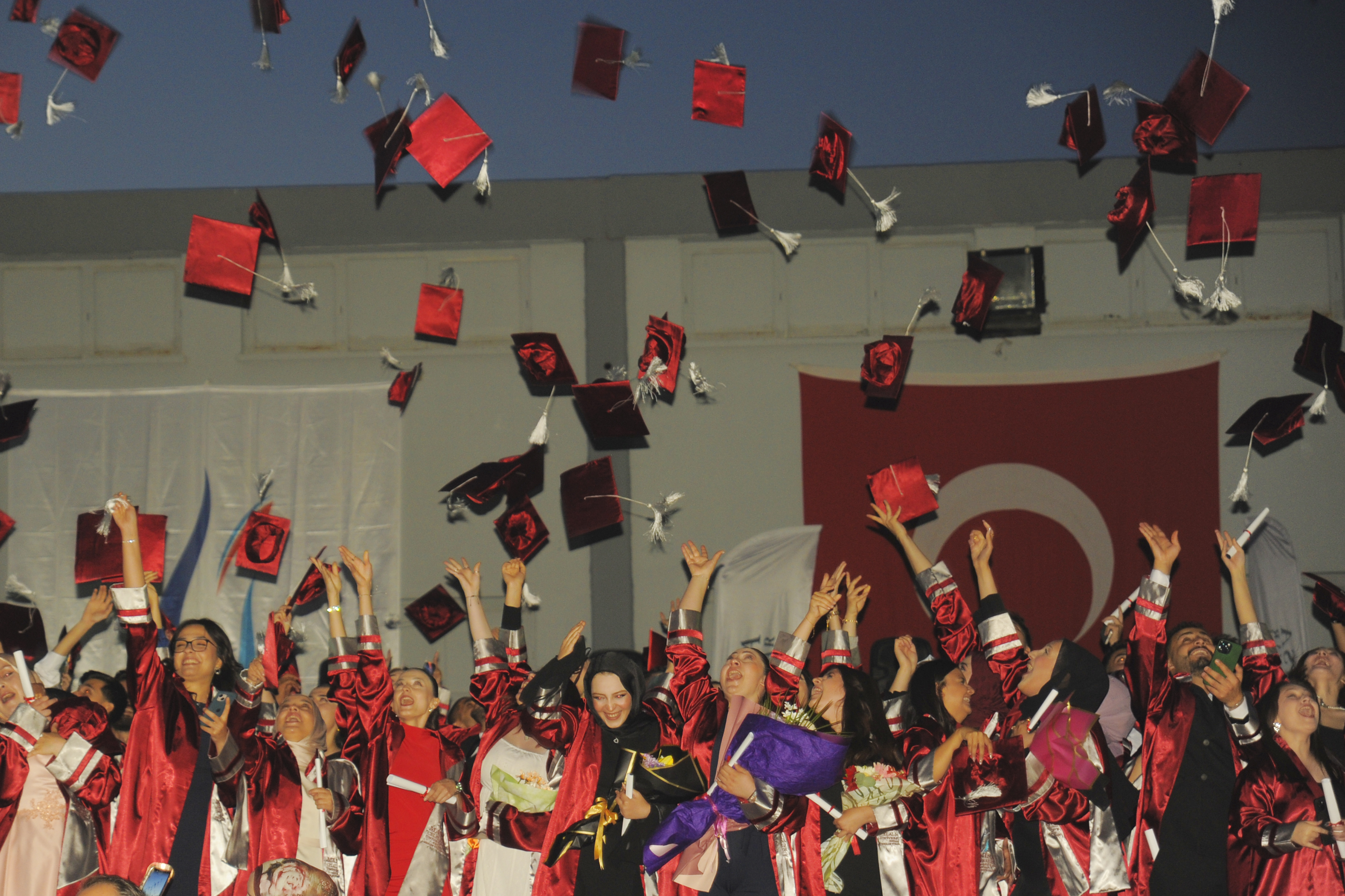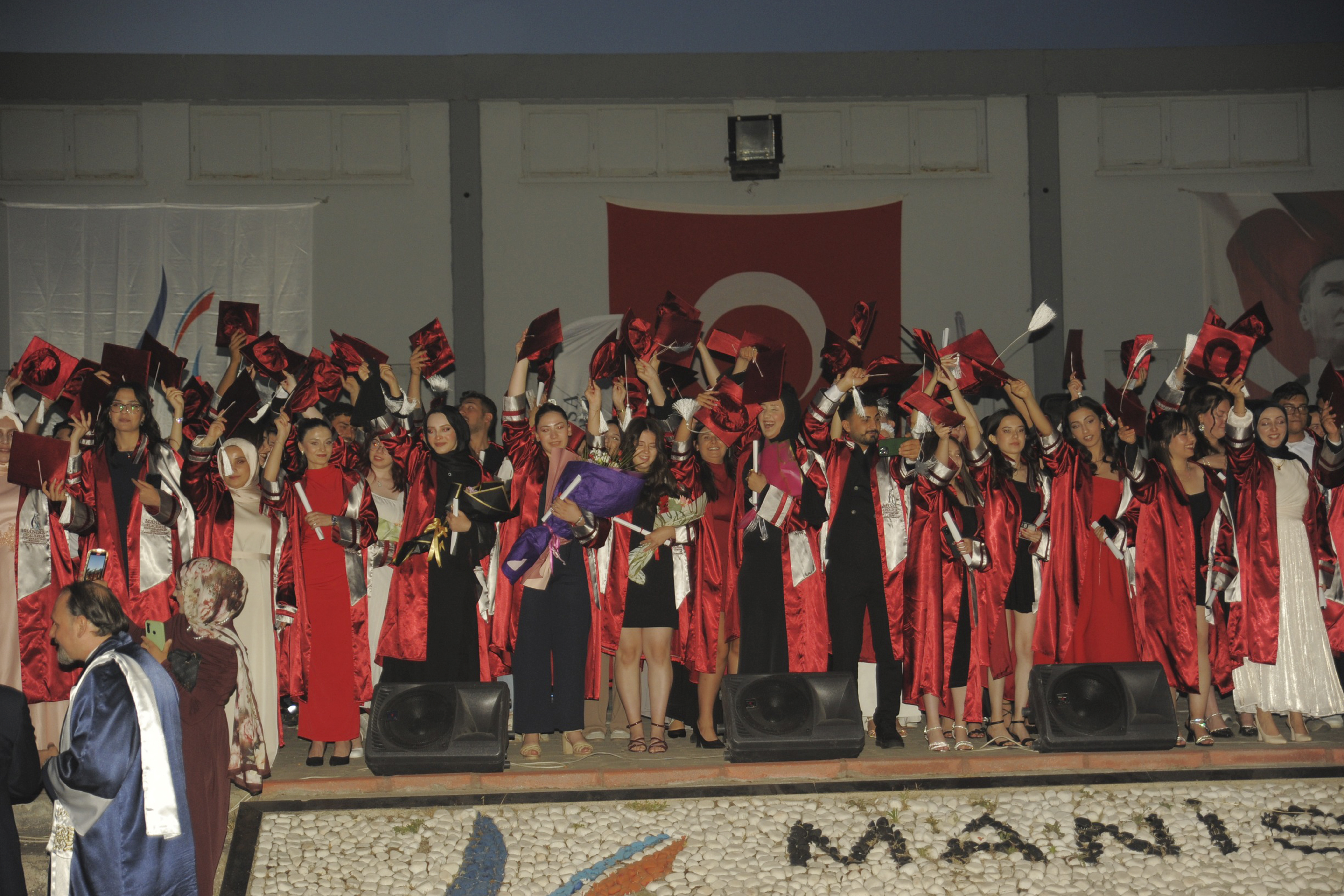 Mezuniyet Töreni, dereceye giren öğrencilerin başarı belgelerinin verilmesi, mezun öğrencilerin temsili mezuniyet belgelerini alması ve geleneksel kep atma töreni ile sona erdi.