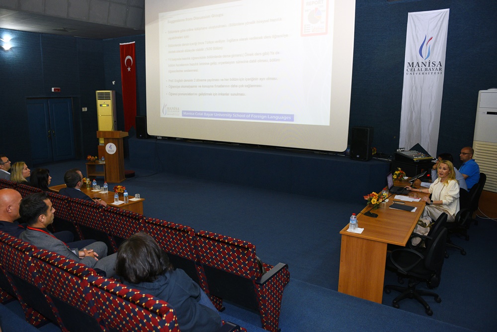 Bölüm öğretim elemanları tarafından hazırlık eğitimi ve ortak zorunlu derslerle ilgili sunumların gerçekleştirildiği ve iki oturum şeklinde düzenlenen çalıştayda; %30, %100 ve İsteğe Bağlı İngilizce eğitim veren bölümler ile zorunlu ders olarak Yabancı dil (İngilizce) dersleri olan fakülte ve yüksekokullar arasında yapılan bilgi-alışverişi sonrasında, yabancı dil öğretiminin geliştirilmesine yönelik alınacak olası eylemler ve ileriye taşınabilecek adımlar hakkında görüşler aktarıldı.