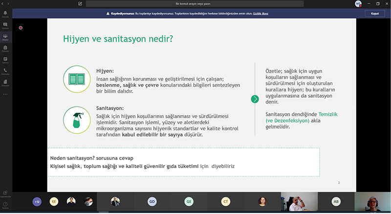 Uzaktan Eğitim Microsoft Teams aracılığı ile gerçekleştirilen eğitimde, hijyen ve sanitasyon hakkında genel bilgilendirme, kişisel hijyen için yapılması gerekenler, Covid-19 ile mücadele, hijyen ve sanitasyonun bulaşı yöntemindeki önemi konularına değinildi. Corona Virüs’ten korunmanın kişisel hijyen ile başladığını kaydeden Prof. Dr. Semra Kayaardı “Kişisel olarak alınabilecek önlemlerin, hastalığın tedavisinden daha kolay ve can kurtarıcı olduğunu” belirterek; “Salgın henüz devam ederken, sosyalleşme hareketlerine paralel olarak kişisel hijyen ve sanitasyona dikkat etmemiz önce bizim, sonra sevdiklerimizin ve toplumun sağlığını korumak için kritik önem taşımaktadır” diye konuştu.