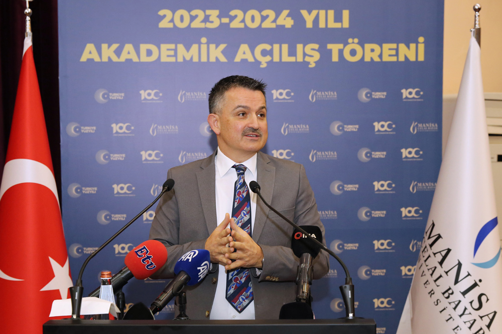 Üniversitenin akademik yıl açılış töreninde yer alan Tarım ve Orman Bakanlığı eski Bakanı Bekir Pakdemirli konuşmasında, “İyi nesiller yetiştirmek hepimizin görevi. Ülkemiz bir yarışın içinde. Son 50 senede ekonomik büyüklük olarak 15-25’inci sıralardayız. Yarışı kazanmak için bilgi toplumu olmamız lazım. Son 10 yılda belli bir yere geldik, orta gelir tuzağındayız. Bu tuzaktan çıkmamız lazım. Eğitim seviyemizi ileriyle doğru çekmek zorundayız” şeklinde konuştu.