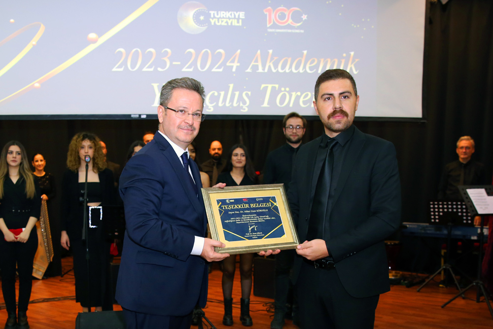 Protokol konuşmalarının ardından en çok yayın yapan akademisyenlere Makale Performans Ödülleri takdim edilirken, Güzel Sanatlar Tasarım ve Mimarlık Fakültesi Müzik Bölümü öğretim üyeleri ve öğrencileri tarafından verilen konser ile tören son buldu.