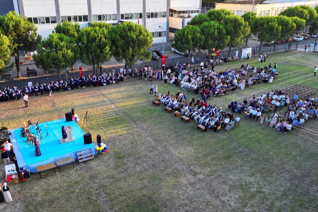 “Bizim hedefimiz; çevresindekilere ilham veren, gözlerinin içine bakılarak ne söyleyeceği merak edilen, duruşuyla örnek olan bireyler yetiştirmektir” diyen Prof. Dr. Ev, ailelere de seslenerek, “Çocuklarınızı beş yıl önce bizlere emanet ettiniz. Onların ayakları yere basan, donanımlı bireyler olarak mezun olmaları için tüm akademik kadromuzla büyük gayret gösterdik” dedi.