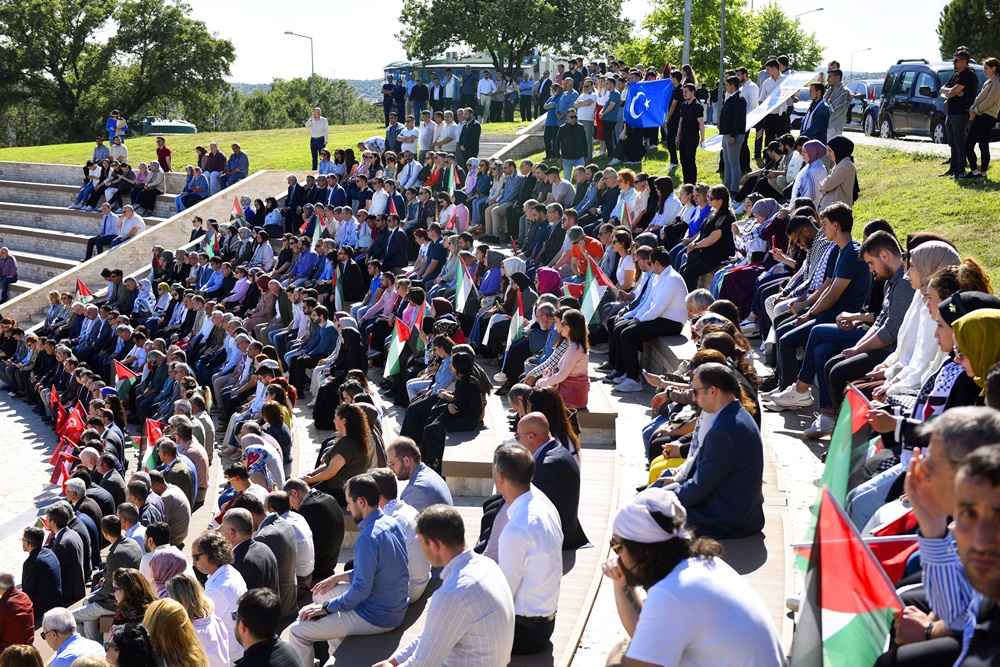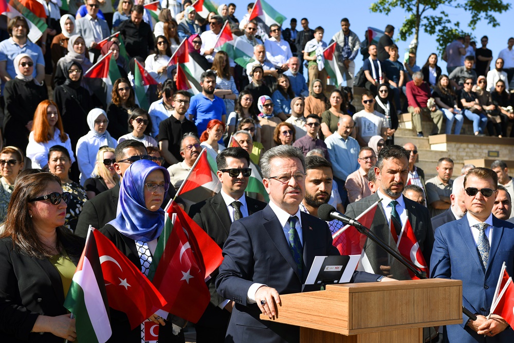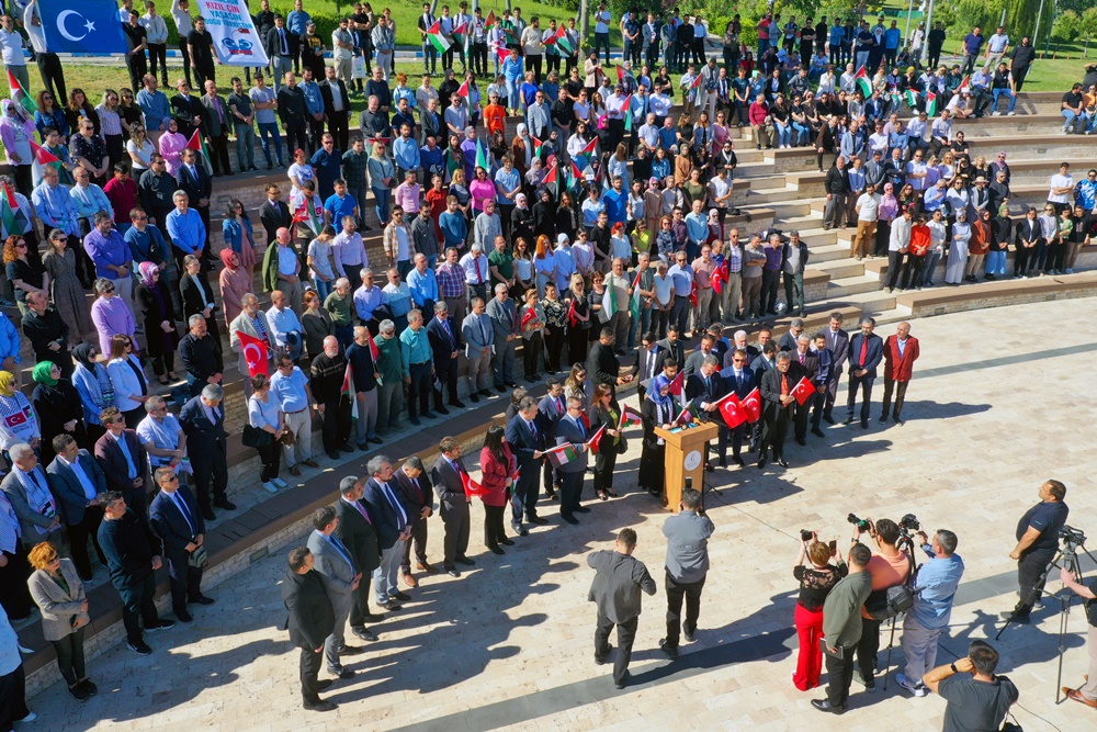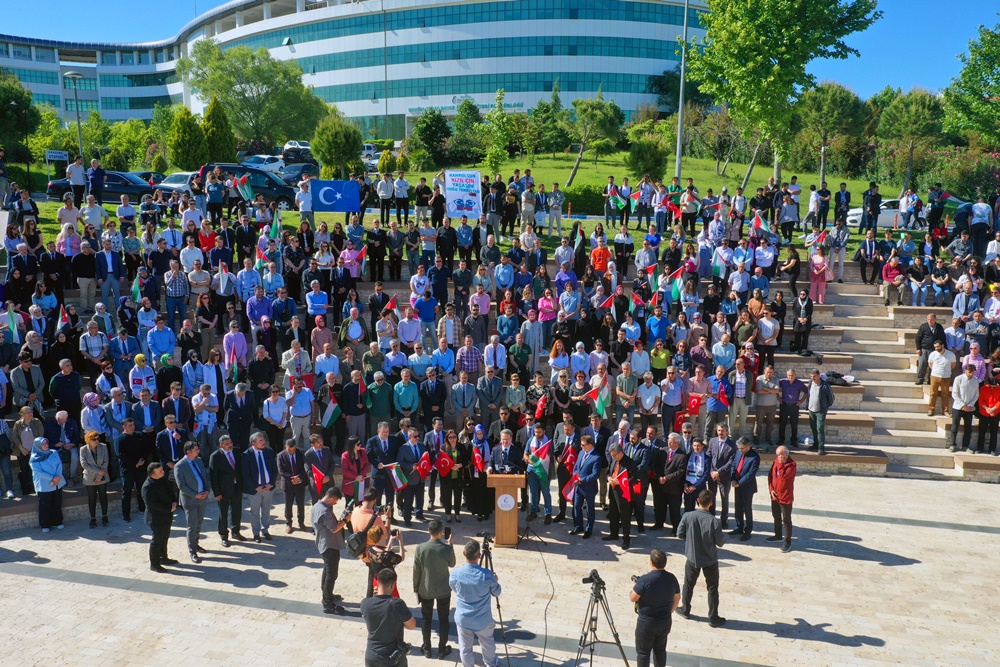 “Sadece Gazze’deki masum sivilleri değil, aynı zamanda insanlık vicdanını, onurunu, evrensel hukuku, insan haklarını, medeniyet değerlerini ve normlarını da katlettiğinizi görün ve bu zulmü durdurun artık! “Haksızlık Karşısında Susan Dilsiz Şeytan’dır” şiarını benimseyerek tüm gücümüz ve kararlılığımızla ABD ve İsrail Yönetimleri tarafından sürdürülen bu zulmün karşısında olduğumuzu çok net bir şekilde bir kez daha haykırıyoruz. Başta Türk Üniversiteleri olmak üzere Dünya’daki tüm üniversiteleri ayağa kalkmaya, yaşanan bu soykırıma ve üniversitelere yönelik akıl dışı baskıya tepki göstermeye davet ediyoruz.”