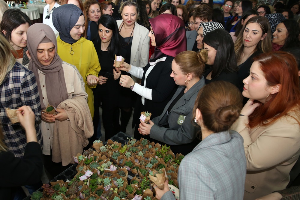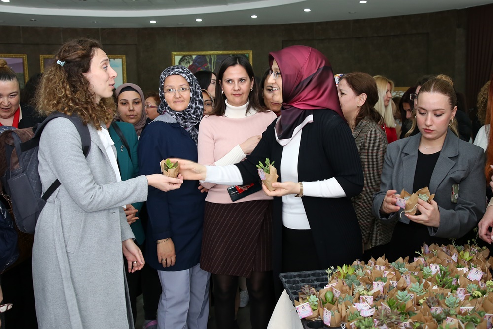 Konuşmasının ardından Prof. Dr. Rana Kibar, kadın çalışanlara çiçek takdim etti.