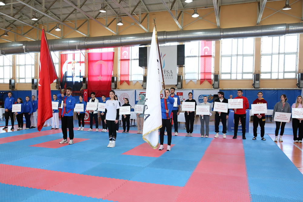 Üniversitelerden gelen sporcuların alana daveti ile başlayan programda, saygı duruşu ve İstiklal Marşı’nın okunmasının ardından Türkiye Karate Federasyonu Başkanı Ercüment Taşdemir yaptığı konuşmada,” Karate disiplin ve azmin sergilendiği bir spordur. Bu sahada sadece yeteneklerinizi sergilediğiniz değil centilmenliğin, takım ruhunun oluştuğu bir yerdir. Bugün burada sergilenecek mücadele hem bireysel hem takım ruhunun göstergesi olacaktır” dedi.