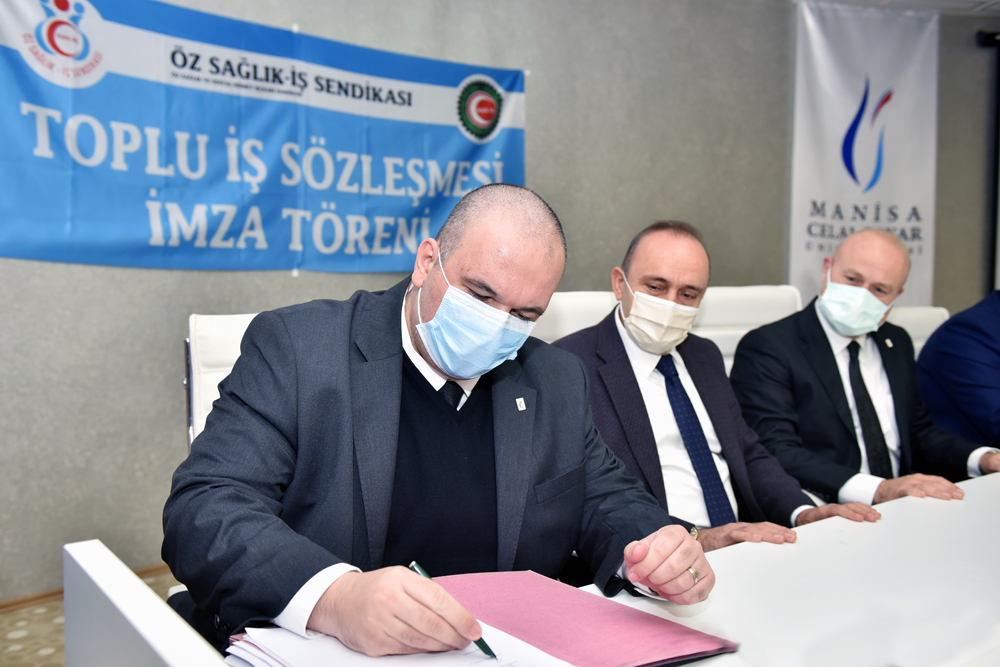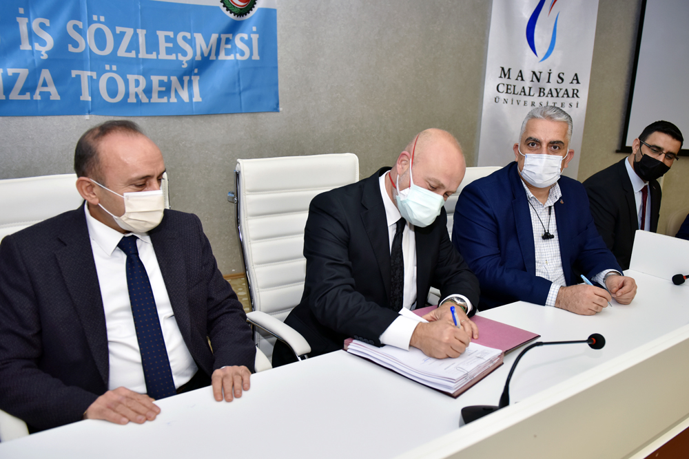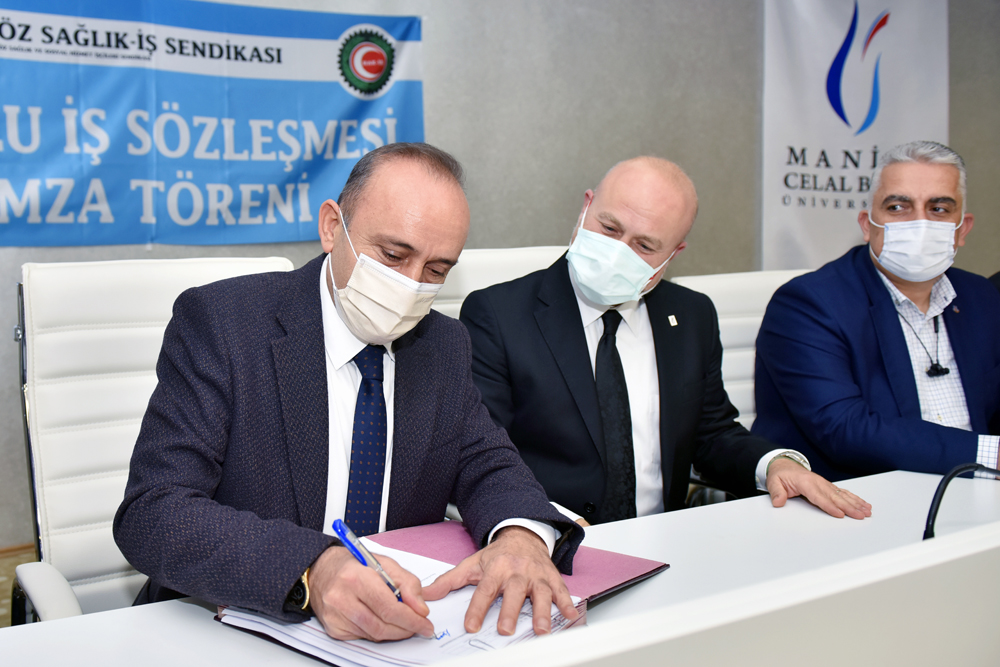 Gerçekleşen imza törenine, telefon bağlantısı ile katılan Manisa Celal Bayar Üniversitesi Rektörü Prof. Dr. Ahmet Ataç, “Sağlık ve Sosyal Hizmetler iş kolunda bulunan işçilerimizin hak ve menfaatlerini teminat altına almak, düzenli ve verimli çalışmalarını sağlamak amacıyla imzalanan toplu iş sözleşmesinin, üniversitemiz ve işçilerimiz için hayırlı olmasını diliyorum” ifadelerini kaydetti.