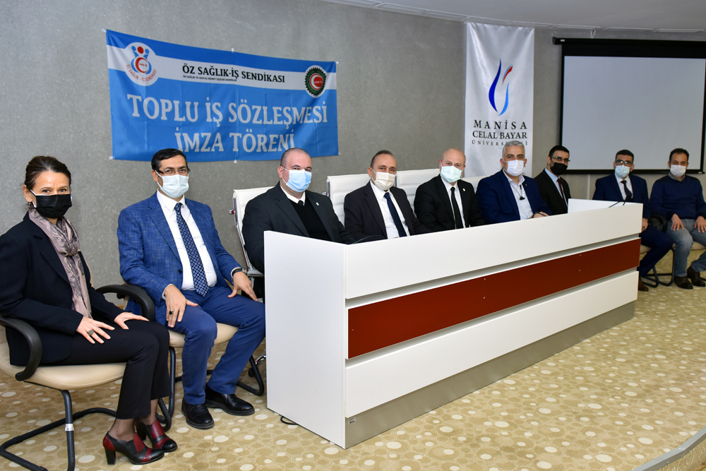 Rektörlük toplantı salonunda gerçekleşen imza törenine, Öz Sağlık-İş Sendikası Genel Başkanı Devlet Sert, Genel Başkan Başdanışmanı Yavuz Aksanoğlu ve Genel Sekreter Halit Kayalı ile Manisa Celal Bayar Üniversitesi Rektör Yardımcısı Prof. Dr. Kıvanç Günhan, Genel Sekreter V. Doç. Dr. Bora Canbula, Personel Daire Başkanı V. Murat Öngel, Sağlık Hizmetleri Müdürü Ferya Karadağ Yalçın ve Avukat Raif Horata katıldı.