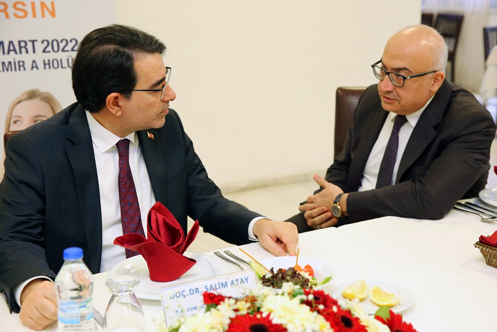 Ege Üniversitesi Yeni Senato Salonu’nda gerçekleştirilen toplantıya İzmir Valisi Yavuz Selim Köşger, Cumhurbaşkanlığı İnsan Kaynakları Ofisi Başkanı Doç. Dr. Salim Atay, Manisa Celal Bayar Üniversitesi Rektörü Prof. Dr. Ahmet Ataç, EGEKAF’ta yer alacak 20 üniversitenin rektörleri, sivil toplum kuruluşları ve iş dünyasının temsilcileri katıldı.