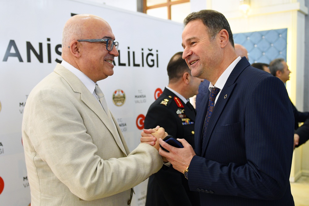 Törende Vali Vekili Ahmet Yılmaz, 1. Komando Er Eğitim Tugay Komutanı Piyade Albay Sebahattin Kalkan, İl Jandarma Komutanı Tuğgeneral Zafer Tombul, Manisa Büyükşehir Belediye Başkan Vekili Mehmet Palabıyık ve Manisa Celal Bayar Üniversitesi Rektörü Prof. Dr. Ahmet Ataç ile salon girişinde misafirleri karşıladı.