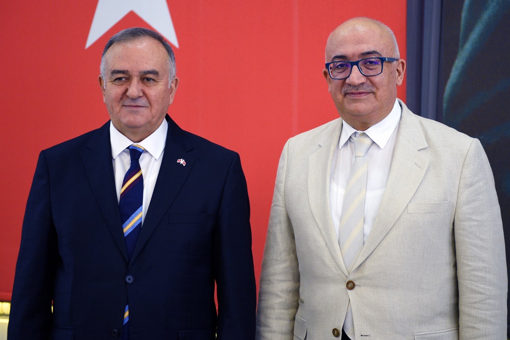 Salondaki misafirlerle sohbet eden protokol mensupları bayram kutlamalarını gerçekleştirdi.