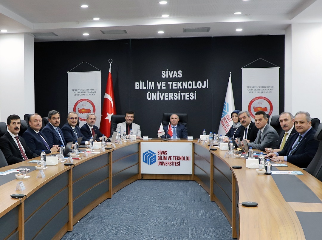 Üniversitelerarası Kurul Başkanı Kafkas Üniversitesi Rektörü Prof. Dr. Hüsnü Kapu başkanlığında SBTÜ Senato Salonu'nda düzenlenen toplantıya ÜAK Yönetim Kurulu Üyeleri ve Komisyon Başkanları katıldı.