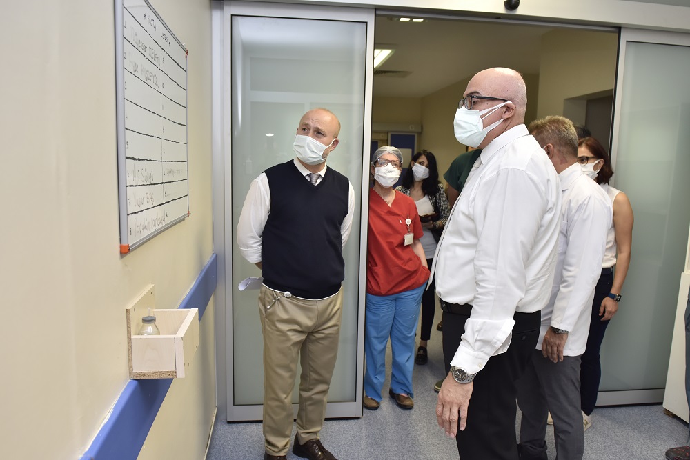 Rektör Yardımcısı Prof. Dr. Kıvanç Günhan, Rektör Danışmanı Prof. Dr. Özge Yılmaz, Hastane Başhekimi Prof. Dr. İsmet Topçu ve hastane yönetiminin eşlik ettiği Rektör Prof. Dr. Ahmet Ataç, acil servis, anestezi yoğun bakım ünitelerini yerinde inceleyerek tedavi ve ekipmanlar hakkında detaylı bilgi aldı.