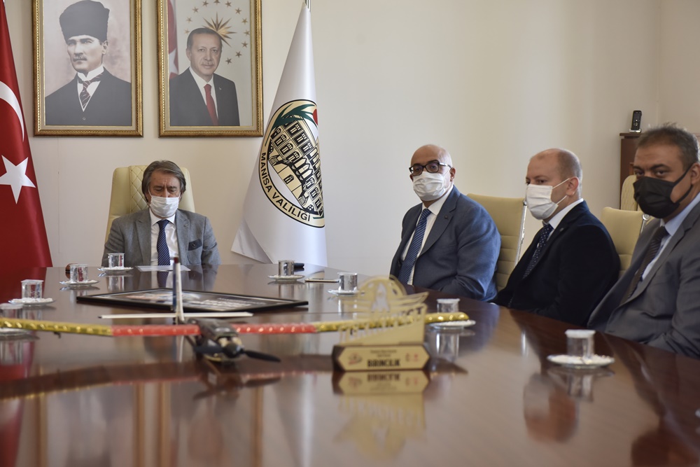TEKNOFEST 2021 kapsamında katıldığı TÜBİTAK Uluslararası İnsansız Hava Aracı yarışması sabit kanatlı İHA kategorisinde, TUSAŞ (Türk Havacılık ve Uzay Sanayi A.Ş.) özel ödülü ve Türkiye birinciliği performans ödülünü Cumhurbaşkanı Sayın Recep Tayyip Erdoğan ve Nobel Ödüllü Türk Bilim İnsanı Prof. Dr. Sayın Aziz Sancar’ın elinden alan, MCBÜ KAYGUSUZ takımı öğrencileri, Manisa Celal Bayar Üniversitesi Rektörü Prof. Dr. Ahmet Ataç, Hasan Ferdi Turgutlu Teknoloji Fakültesi Dekanı Prof. Dr. Nevzat Onat, Dekan Yardımcıları Doç. Dr. İbrahim Fadıl Soykök, Doç. Dr. Kıvanç Başaran, ve KAYGUSUZ Takımı Danışmanı Dr. Öğretim Üyesi Özgür Solmaz ile birlikte Manisa Vali Yardımcısı Mesut Eser’e ziyaret gerçekleştirdi.