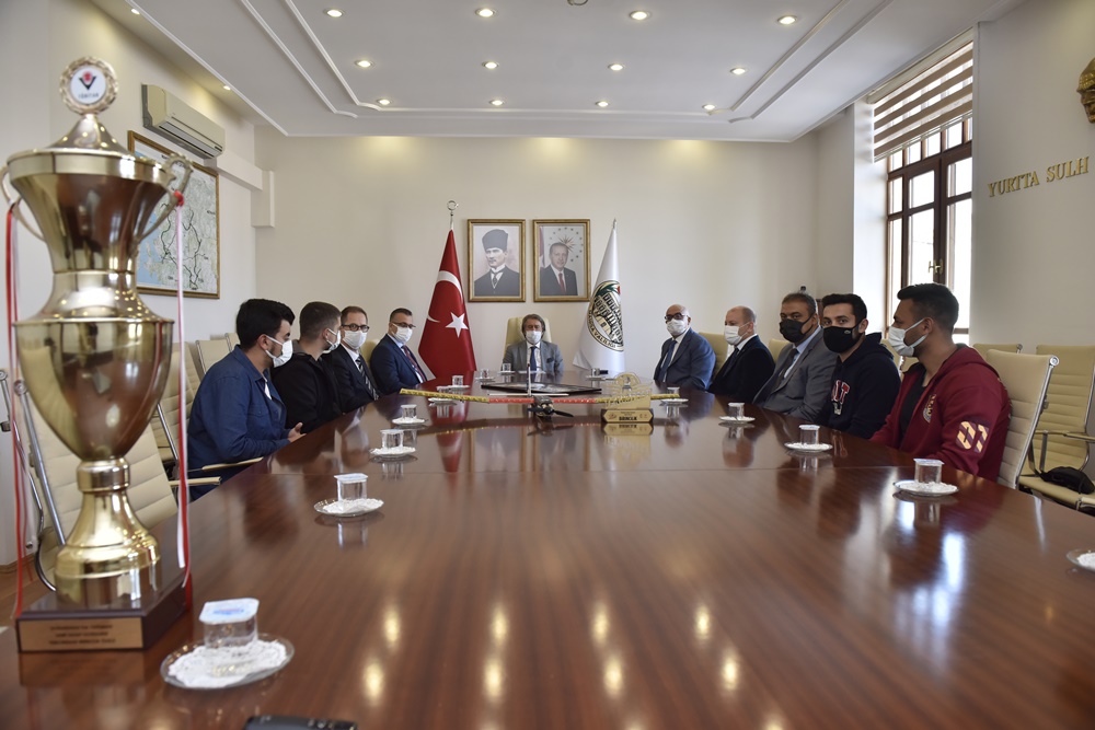 Rektör Prof. Dr. Ahmet Ataç, konuşmasında, “Şehidimizin ismini taşıyan bu proje emek, alın teri, çaba, inanç ve çokça çalışma içeriyor. Öğrencilerimiz hiçbirimiz birbirimiz kadar akıllı değiliz sözüyle yola çıkarak sonucunda haklı bir başarıya imza attılar.” ifadelerinde bulundu.
