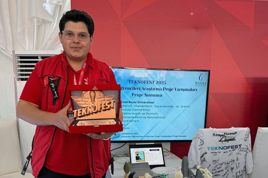 Ayrıca, TEKNOFEST 2025 İstanbul kapsamında düzenlenen 2242 Üniversite Öğrencileri Araştırma Projeleri Yarışması’nda, Makine İmalatı ve Otomotiv ile Malzeme Bilimi ve Nanoteknoloji tematik kategorilerinde yarışan Kovak: KompoFilament Takımı, önemli bir derece elde etti. Takım kaptanı Muhammed Emre Çokyaşar liderliğinde, Dr. Öğr. Üyesi Uğur Özmen danışmanlığında hazırlanan “Kompozit Filamentlerin Dayanıklılıkları ve Üretim Açıların Dayanıklılık Üzerine Etkisi” başlıklı proje, kategorisinde Türkiye 3.’sü olarak ödülünü T3 Vakfı Mütevelli Heyeti Başkanı Selçuk Bayraktar ve TÜBİTAK Başkanı Prof. Dr. Orhan Aydın’ın elinden aldı.