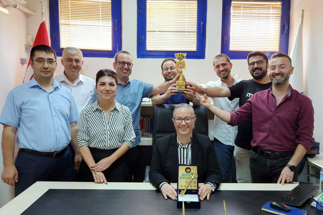 Bu yıl ev sahipliğini İzmir Kâtip Çelebi Üniversitesi'nin üstlendiği yarışmada üstün performans gösteren Öğr. Görevlileri Burak Balaban, Kıvanç İslam Aksu, Mustafa Bayar, Sezin Kanaat ve Şerif Yılmaz, üniversitemize birincilik kupasını getirdi.