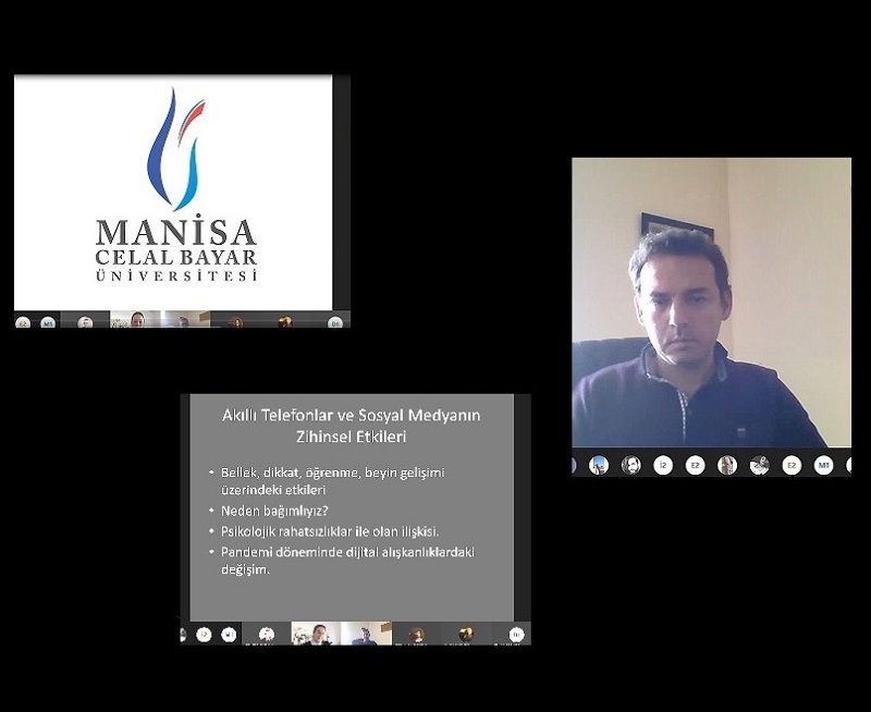 Manisa Celal Bayar Üniversitesi Kalite Koordinatörlüğü ve Fen-Edebiyat Fakültesi Dekanlığı iş birliğinde düzenlenen, “Teknoloji Bağımlılığının Zihinsel Etkileri” ve “Genç Nesil Dijital Dünya ve Psikoloji” webinarları gerçekleştirildi.