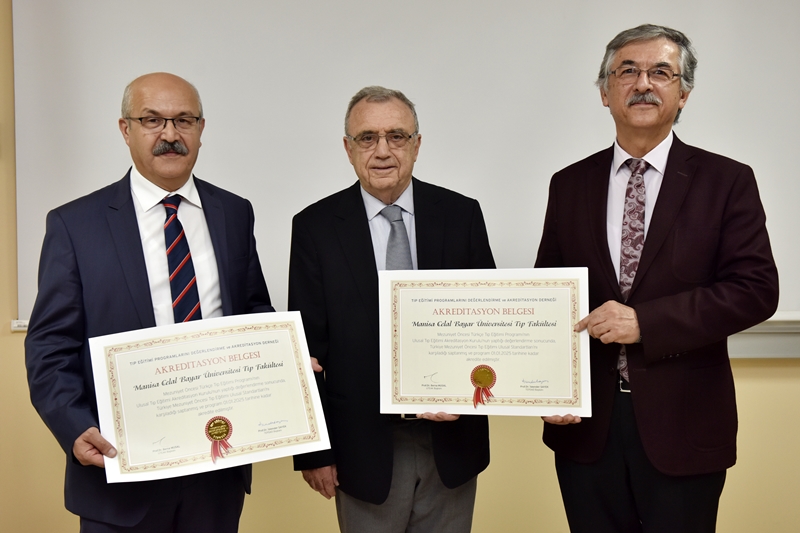 Akreditasyon Belgesi Takdim Töreni; TEPDAD Başkanı Prof. Dr. İskender Sayek tarafından “Manisa Celal Bayar Üniversitesi Tıp Fakültesi Mezuniyet Öncesi Tıp Eğitim Programı Akreditasyon Belgesi”nin, Tıp Fakültesi Dekanı Prof. Dr. Süleyman Sami İlker’e takdimi ile son buldu.
