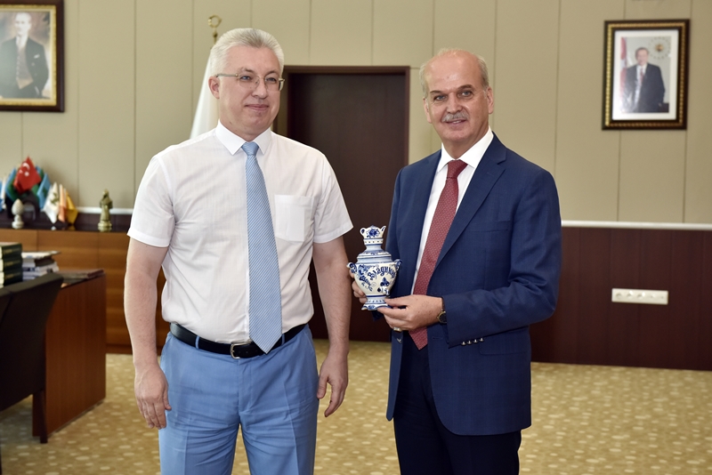 Türk milleti tarih boyunca diğer milletlerle arasındaki ilişkilerini hep hakikat ve adalet değeri üzerine kurmanın gayreti ve çabası içinde olmuş, politikasını bu şekilde inşa etmiştir. Bundan sonraki süreçte de hem Rusya Federasyonu ile hem de diğer devletlerle kuracağımız ilişki, değerlere dayalı bir ilişki olursa çok daha doğru, çok daha sağlıklı bir zeminde ilerleme imkânı bulacaktır. Aslında değerlere dayalı siyaseti korumayı başarma noktasında evrensel kurumlar olan üniversitelere çok büyük sorumluluk düşüyor. Üniversiteler bilimi esas alır, insanı esas alır. Bizim Üniversitemizin mottosu da “Bilim ve İnsan”dır. Dolayısıyla üniversiteler bu yüksek kutsal değerler üzerinden küresel düzeyde ilişkilerin kurulması noktasında, daha büyük bir rol oynamış ve sorumluluk almış olacaklar. Zaten kıymetli Rektörümüz ile çok kıymetli dostumuz Talat Enveroviç Çetin, protokol imzalandıktan hemen sonra bizi beklemeden ziyarete gelmek suretiyle bu konudaki iradelerini ve kararlılıklarını ortaya koydular. Biz de bu kararlılığa sahibiz. Bu işbirliği protokolü kesinlikle kâğıt üzerinde kalmayacaktır, bunu hayata geçireceğiz. Tüm kaynaklarımızı ve imkânlarınızı bu işbirliğini daha yukarılara taşımak için seferber edeceğiz. Türkiye ve Rusya arasında son zamandaki olumlu gelişmeler, inşallah üniversiteler arasında kurulan bu işbirliği ile kuvvetli bir esasa dayanmış olacak. Üniversitemiz adına bu işbirliğinden duyduğum memnuniyeti ifade ediyorum. Kıymetli dostuma, hocama, meslektaşıma tekrar samimiyetinden dolayı, işbirliği ile ilgili güçlü beyanlarından dolayı duyduğum memnuniyeti ifade ediyorum. Teşekkür ediyorum” diye konuştu.