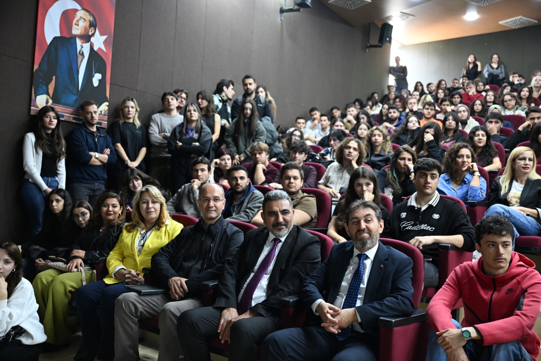 Konferans sonunda Rektör Prof. Dr. Rana Kibar, katkılarından dolayı İlker Astarcı’ya teşekkür plaketi takdim etti. Program, öğrencilerle yapılan soru-cevap bölümü ve toplu fotoğraf çekimiyle sona erdi.