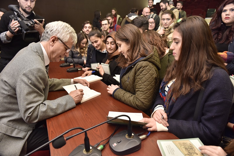Rektör Yardımcımız Prof. Dr. Muzaffer Tepekaya tarafından teşekkür belgesi takdim edilen Doç. Dr. Sabahattin Çağın; konferansının ardından kitaplarını imzalayarak, öğrencilerimizin sorularını cevapladı.