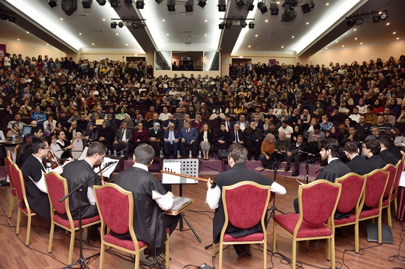 Öğrencilerin yoğun ilgi göstererek salon giriş kapılarının önlerine kadar doldurduğu program, Üniversitemiz Güzel Sanatlar, Tasarım ve Mimarlık Fakültesi Müzik Bölümü öğretim elemanları ve öğrencileri tarafından verilen ‘Tasavvuf Müziği Konseri’ ile başladı.